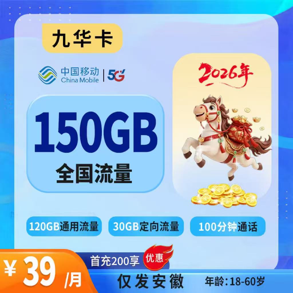 39元150G通用流量+150分钟通话
