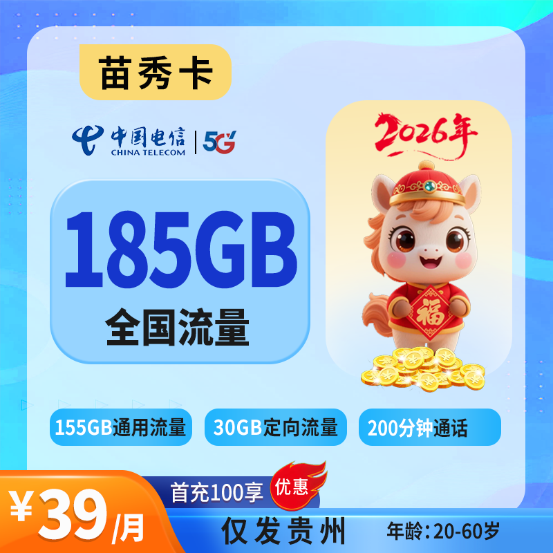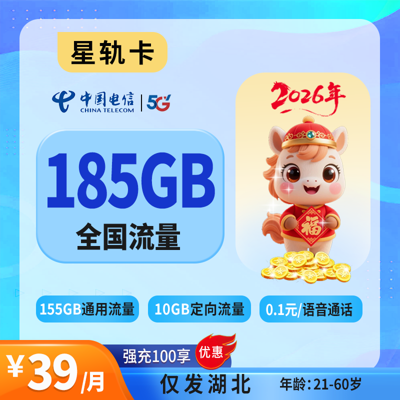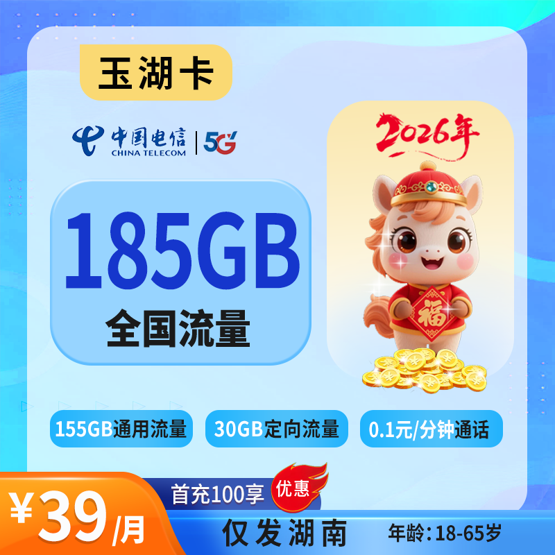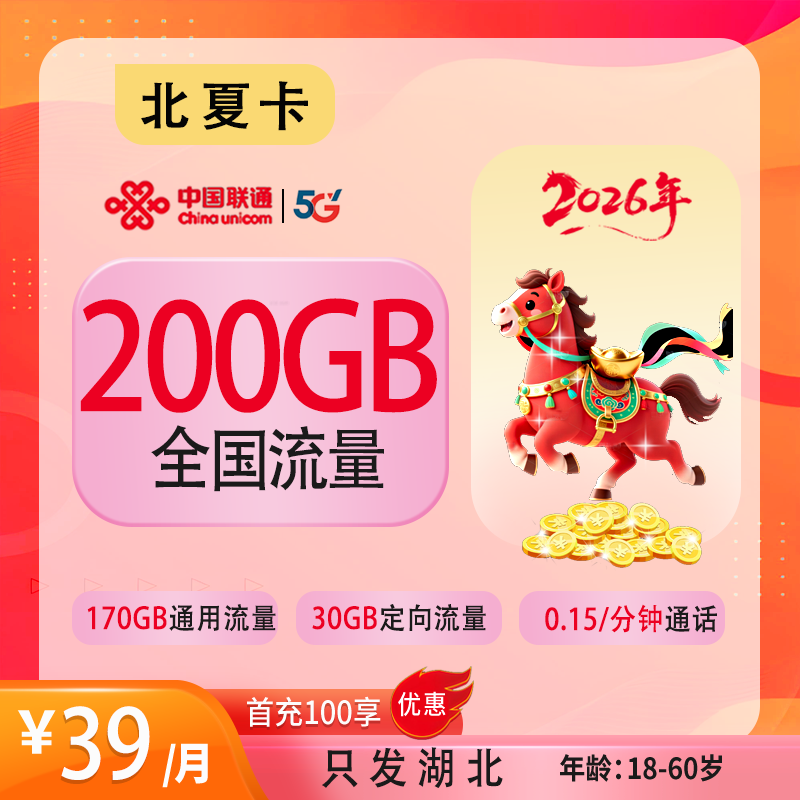 39元100G+100分钟(仅发湖北)
