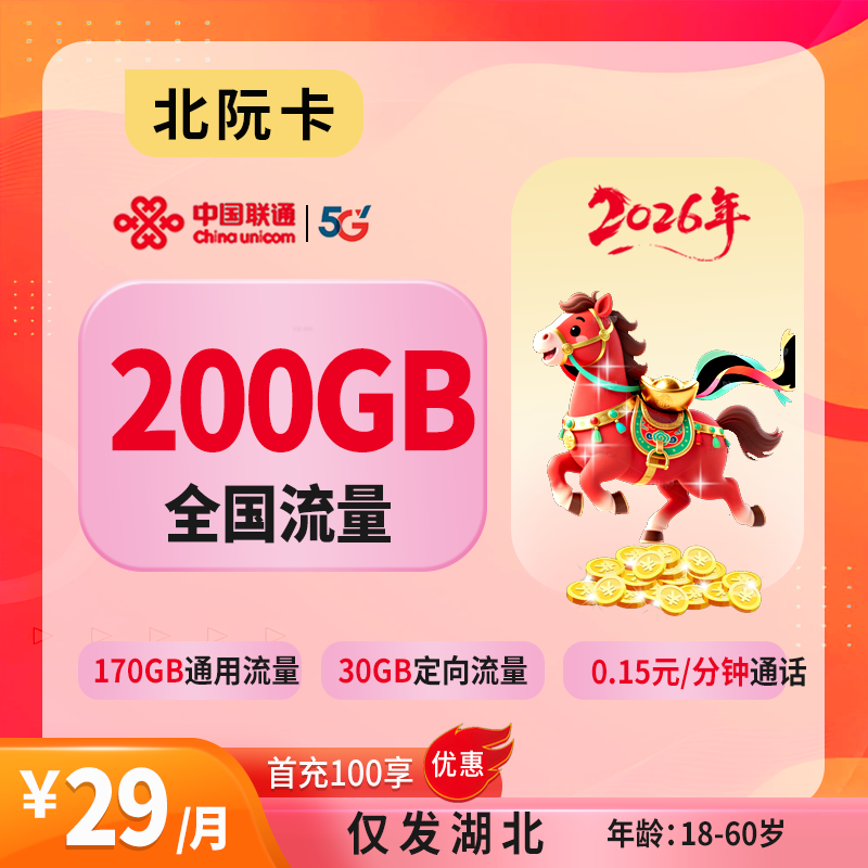 29元130G全国通用+200分钟+会员权益
