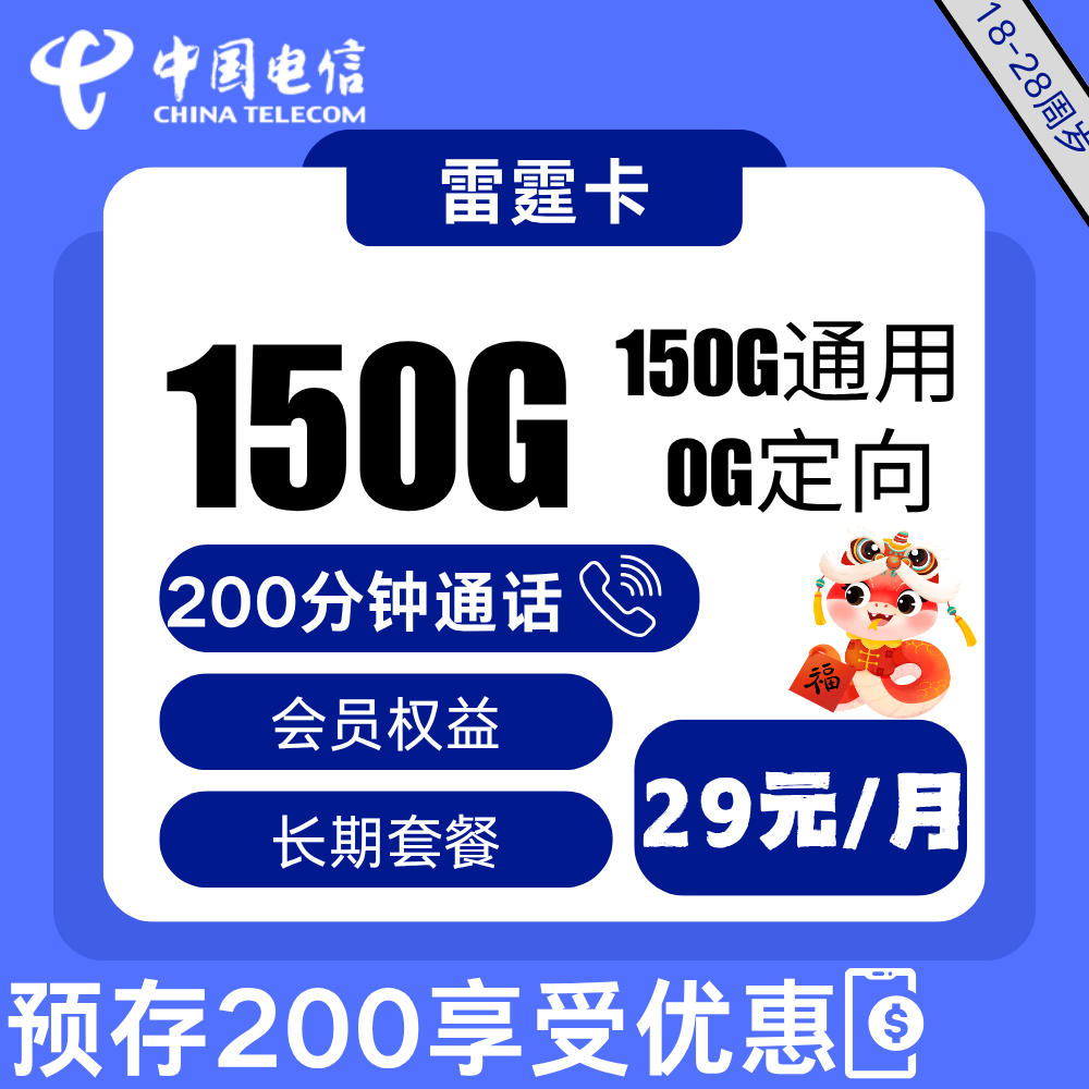 29元150G通用流量+200分钟通话